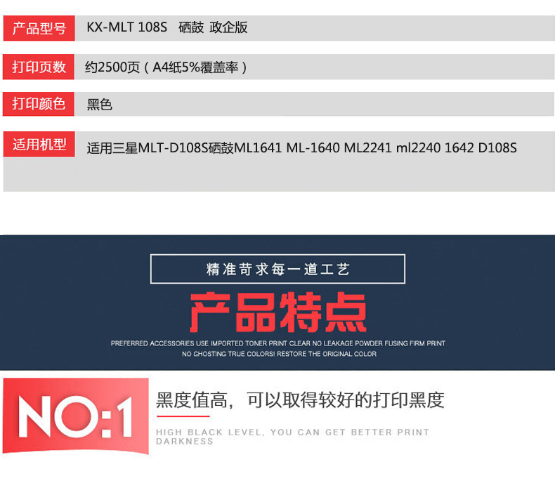 凱欣KX-MLT108S 適用三星MLT-D108S硒鼓ML1641 ML-1640 ML2241激光打印機墨盒ml2240 全國統(tǒng)一價:295元