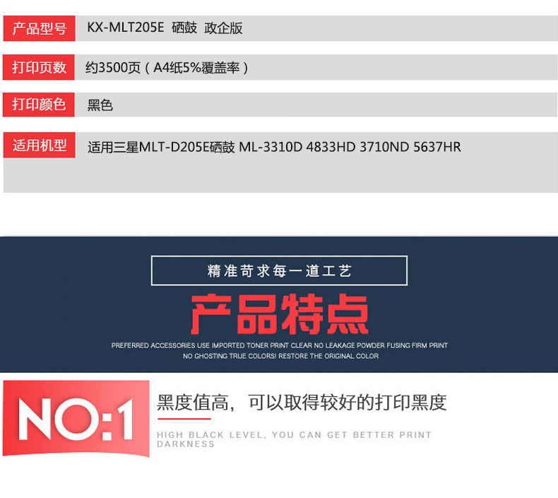 凱欣KX-MLT205E 適用三星 MLT-D205E 硒鼓 ML-3310D 4833HD 3710ND 5637HR 全國統(tǒng)一價:226元