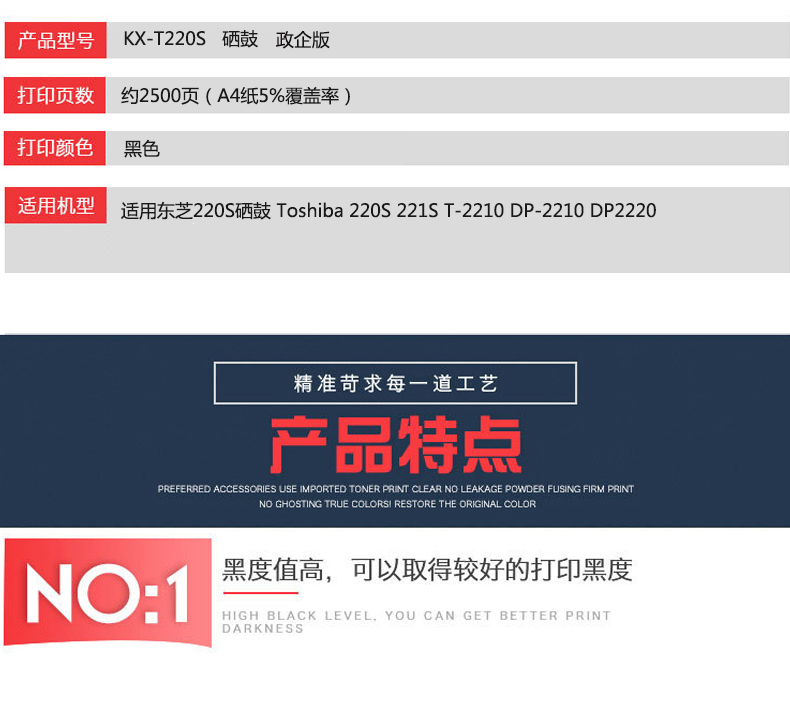 凱欣KX-T220S 適用東芝220S硒鼓 Toshiba 220S 221S打印機(jī)墨盒 易加粉T-2210墨粉盒DP-2210曬鼓DP2220碳粉盒 全國統(tǒng)一價:195元