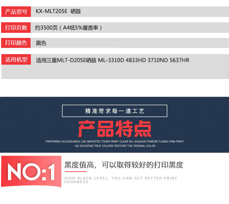 凱欣標準版 MLT205E硒鼓 適用三星 MLT-D205E 硒鼓 ML-3310D 4833HD 3710ND 5637HR 全國統(tǒng)一價:256元
